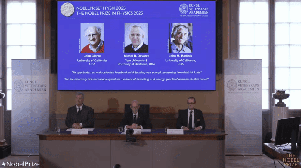 La Real Academia Sueca de Ciencias otorgó el Premio Nobel de Física 2025 al britránico John Clarke, al francés Michel Devoret y al estadounidense John Martinis, por el descubrimiento del efecto túnel macroscópico de la mecánica cuántica, con el que se está desarrollando una nueva generación de computadoras extremadamente potentes.